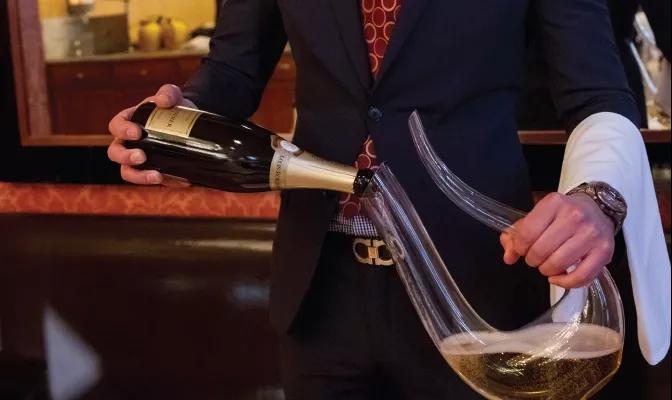 ▲ 侍酒师正在使用七弦琴醒酒器