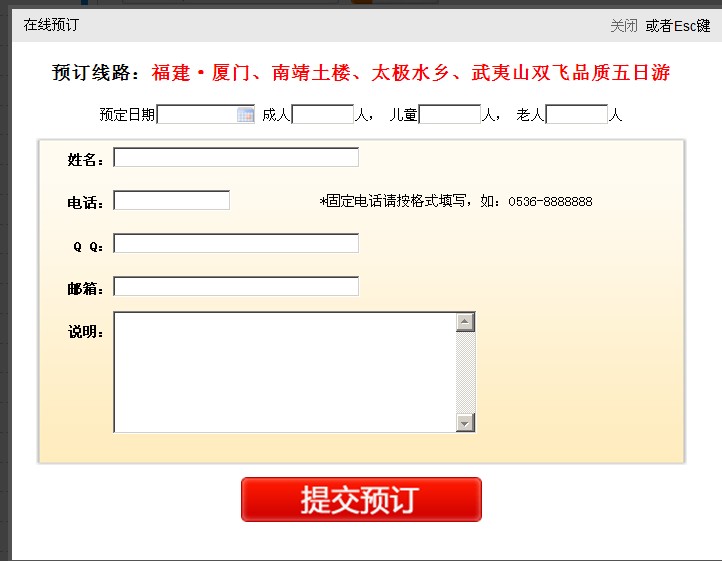 点击 【我要预订】 效果图,请填写完整 点击 【提交预定】即可