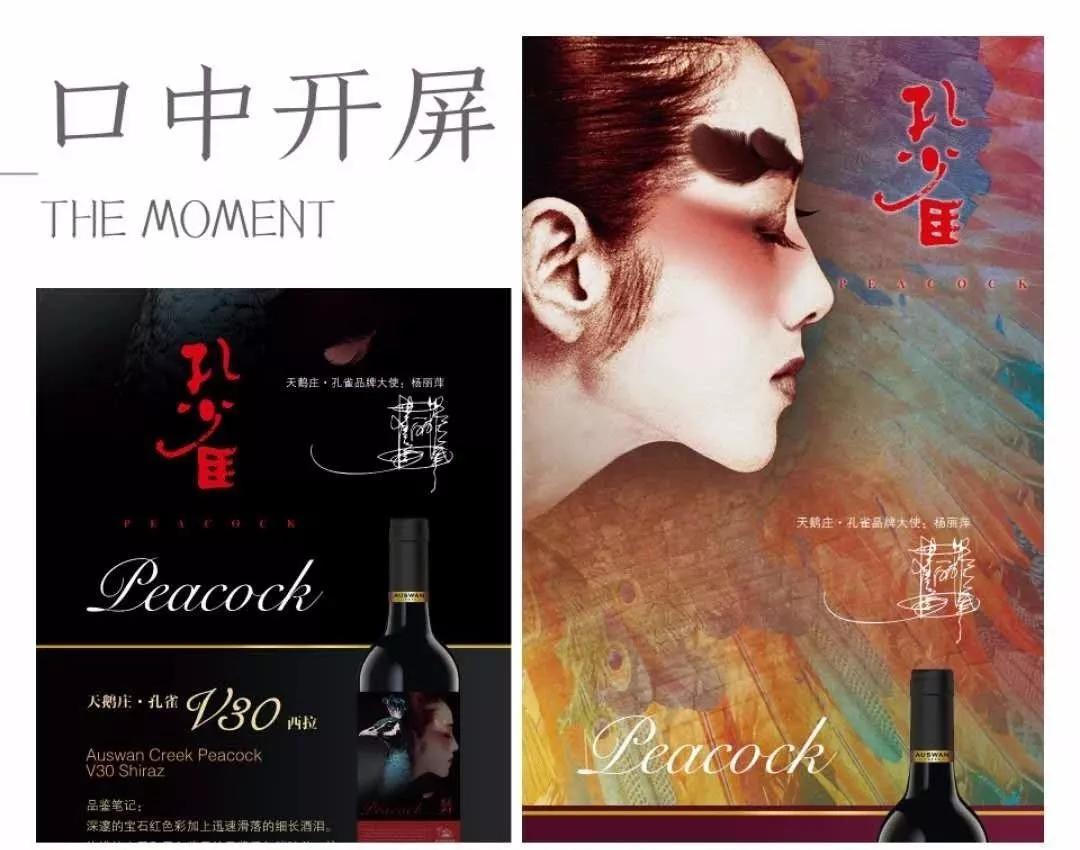 这就很容易让人想起另一个澳大利亚葡萄酒品牌,选择了最民族风的舞蹈家杨丽萍,代言了一款孔雀酒。只是杨丽萍穿着白族服装与澳大利亚酿酒师站在一起的感觉,总是不如今年她改换门庭代言贵州酱酒,跟2000多人一起拉酒线看起来协调。