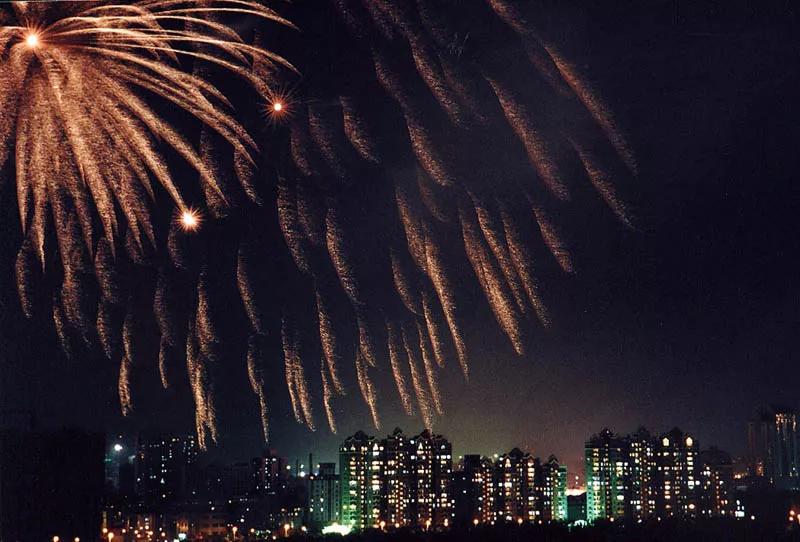 建议大家可以选择在高处进行拍摄,因为可以避免一些不必要的前景,同时也可以将城市的景色纳入画面中。另外,拍摄地点尽量选择在烟花燃放的侧方或者是风的前方,如果站在下风口,燃放烟花的灰尘和烟雾会让你受不了。