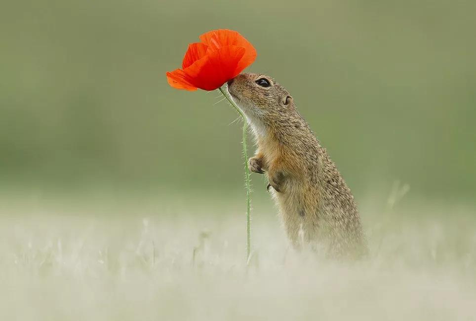 于是我们有幸见到了小松鼠细嗅花香的一面、红狐狸傻乎乎憨态可掬的笑容、咬着坚果不放松的红松鼠那矫健的身姿……