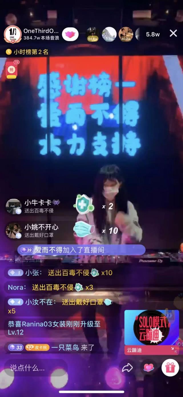 作为一家夜店的招牌之一,DJ们的日子也并不好过。2月11日,ONETHIRD在直播中邀请了嘉宾DJ Tracy。当晚,Tracy创下了1小时收入150万音浪的成绩,价值约15万人民币,一同归入了ONETHIRD的公益通道。