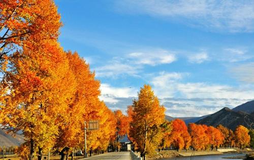 金黄的柏杨,连绵起伏的山峦,