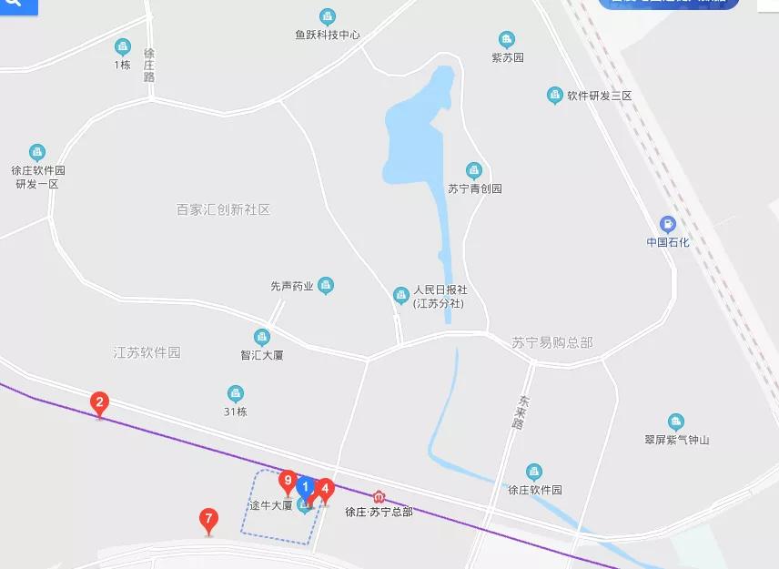 南京的途牛总部,毗邻苏宁总部,以及苏宁易购总部和苏宁青创园。