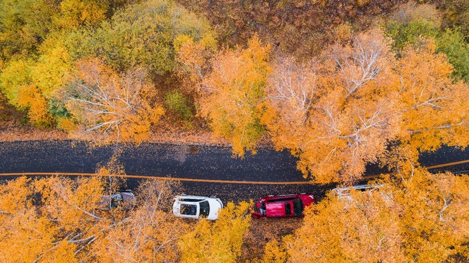 乌兰布统草原的秋天,是一条条通向极目尽头的笔直公路,仿佛可以直达天际;是一座座铺满红色和黄色的山包,流光溢彩,热烈得像过节一般。褐红的草色和金黄的桦叶,起伏绵延的山包,童话般地引导着你走向无尽的远方。秋天的乌兰布统更多地吸引了全世界各地的摄影师到此狂按快门,北沟的日出,蛤蟆坝的牧归,五彩山的日落……你能看到长枪短炮在这里齐鸣,一排排摄影师顶着瑟瑟寒气,只为了定格最美好的瞬间。