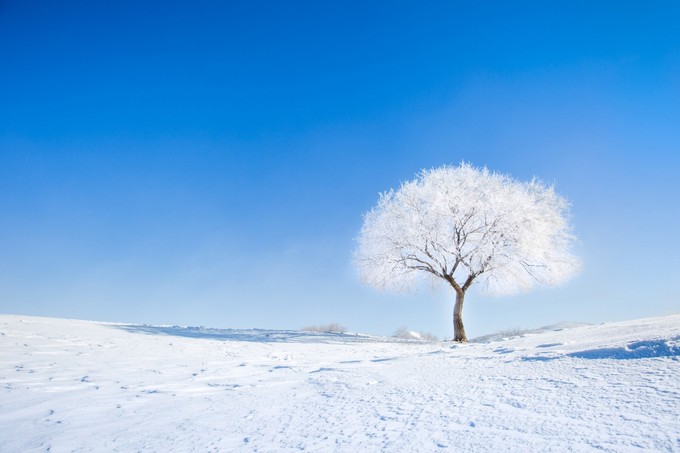 冬季的乌兰布统俨然是一个白雪皑皑,银装素裹的冰雪童话世界,越野车进入塞罕坝森林公园时,道路两边都是鳞次栉比的笔直的参天大树(估计是松柏类),白茫茫的一片,甚至有幸一睹雪白的狐狸,或许是太冷了外出觅食,但是并没有停留很久就不见了踪迹,让人怀疑是否出现过。这里没有雪乡著名的冰雪蘑菇屋,但这里有小河头的雪馒头;这里没有哈尔滨五彩缤纷的冰雕王国,但这里有小巧精致的冰灯。这里的雾凇甚至比我12年在雾凇岛看到的都要壮观,唯美。