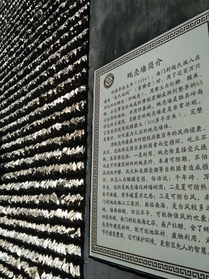 下面就是重头戏:菉猗堂的蚝壳山墙,包揽我国最大、最古老、保存最好的蚝壳墙。蚝壳防潮通风防台风,屹立五百年而不倒,也是废物利用的典范。