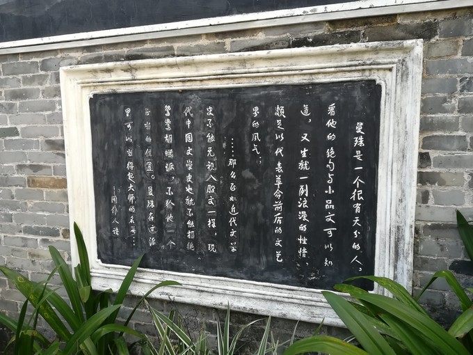 入门的碑廊上陈列了周作人、于右任、陈独秀三人对苏曼殊先生的评价