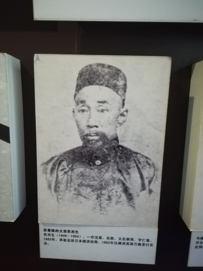 苏曼殊先生之父苏杰生,在日本经商,娶一日本女子为妻生下曼殊,后任英商茶行买办