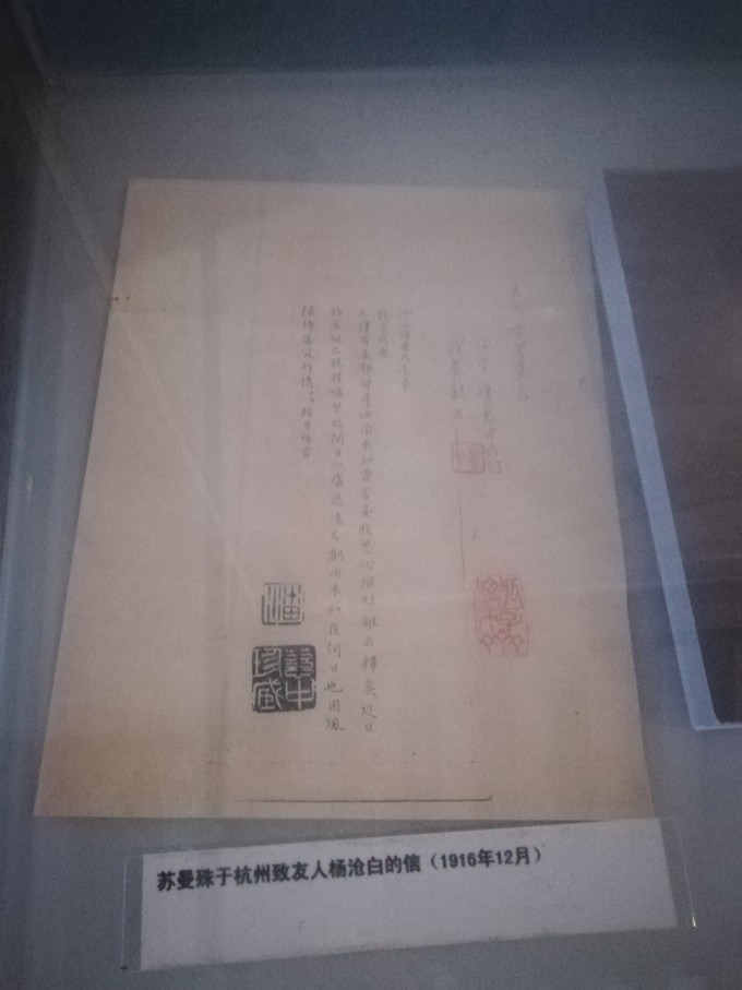 雕像左边是苏曼殊的纪念馆,陈列了几幅苏曼殊书画及一些资料的复制品。