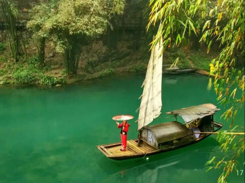 【三峡人家风景区】依山傍水,风情如画:传统的三峡吊脚楼点缀于山水之间,久违的古帆船、乌篷船安静地泊在三峡人家门前,溪边少女挥着棒槌在清洗衣服,江面上悠然的渔家在撒网打鱼……千百年来流传不衰的各种习俗风情体现着峡江人民的质朴好客。