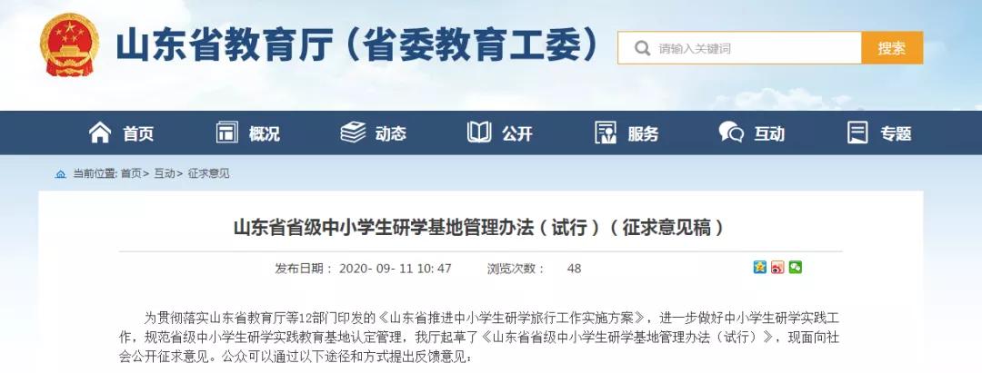 山东省省级中小学生研学基地管理办法(试行)
