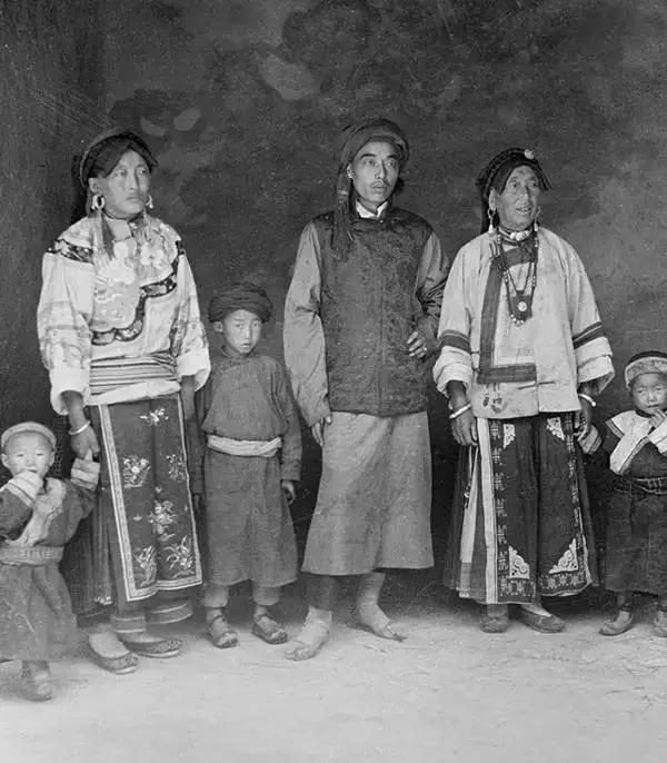 1917年,四川省理县,时任杂谷屯守备的高益斋(藏族)与妻子索黛玉及孩子。