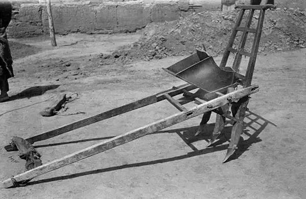 篓。由牲畜牵引,后面有人把扶,用来完成开沟和播种两项工作,这种农具在东北使用比较普遍,它也是现代播种机的前身