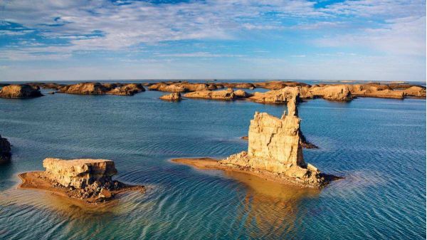 陆地的雅丹地貌很多,但是水上雅丹却极为少有,离大柴旦240公里左右,过了东台收费站约50公里,位于315国道旁2公里左右的鸭湖是这片特殊地貌之中的特殊,是世界上唯一一片在水上的雅丹地貌。这里还未被过度开发,这里还有着神秘面纱,你是探秘也好,你是好奇也罢,当你走进这里,你一定会爱上她。