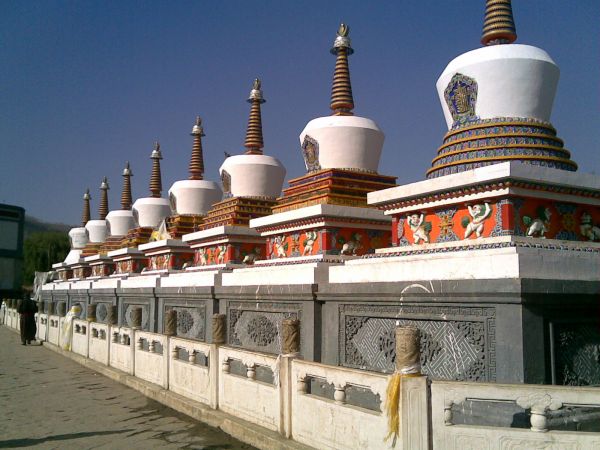 大拉浪由经堂、华门、牌坊3座殿堂组成,为汉藏合璧式建筑,是塔尔寺总法台的居住处,达赖、班禅曾驻跸于此。居巴扎仓(密宗学院)系藏式平顶建筑。曼巴扎仓、丁科扎仓属汉藏结合建筑。宝塔数十座,其中并列于寺前的8座如意宝塔,方座,瓶形塔身,尖顶,根据释迦牟尼一生重要经历和传说建成。 最后终于有了塔尔寺。
