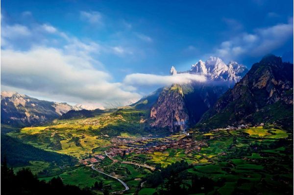 甘肃省迭部县益哇乡“扎尕那”是藏语,意为“石匣子”扎尕那山位于迭部县西北34公里处的益哇乡境内,是一座完整的天然“石城”俗有“阎王殿”之称。地形既像一座规模宏大的巨型宫殿,又似天然岩壁构筑的一座完整的古城。正北是巍峨恢弘、雄伟壮观、璀璨生辉的光盖山石峰,古称“石镜山”因灰白色岩石易反光而有其名;东边耸峙壁立的俊俏岩壁,凌空入云,云雾缭绕;南边两座石峰拔地而起,相峙并立成石门;再南至东哇、纳加一带,峭壁矗立,清流跌宕,水磨飞轮,流转不息。山势奇峻、景色优美,犹如一座规模宏大的石头宫殿,这片世外桃源虽然早在近百年前就被洛克誉为亚当和夏娃的诞生地,但至今仍是一块处女地。