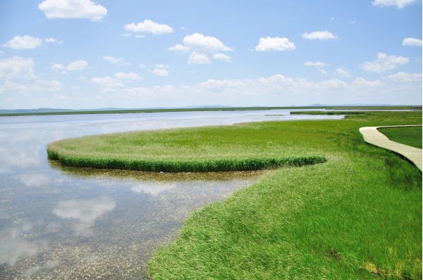 湖水透彻的蓝,是那种无法形容的纯净;缱绻在水天之间的云彩,有着魔力般妖艳。令人想越过栈道一直走到湖中心去,或许那里,会有更大的幸福。花湖是众多野生飞禽的主要栖息地,湖面上游弋着赤麻鸭、灰雁、白骨顶、天鹅等珍稀动物,观景的栈桥延伸到了湖里,信步走到小亭之上,看碧波荡漾,听声声鸟鸣,独自去体味那种浩淼与无垠。天鹅、黑颈鹤、丹顶鹤、藏鸳鸯、燕鸥、秃鹫、老鹰、旱獭、狐狸、草原鼠兔......等众多的高寒湿地所特有的野生动物在这自由生长和生活。