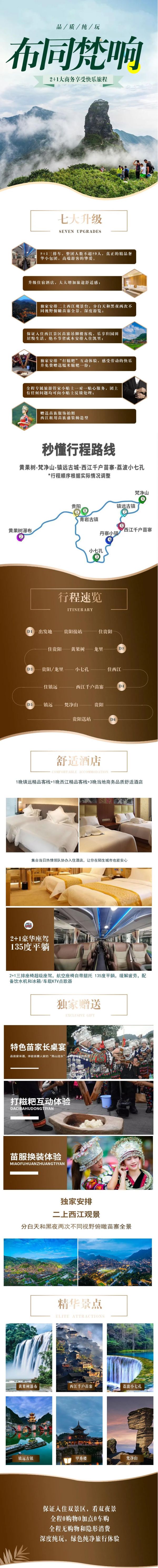 4、门票:含黄果树门票;含梵净山门票;含西江千户苗寨门票;小七孔门票。