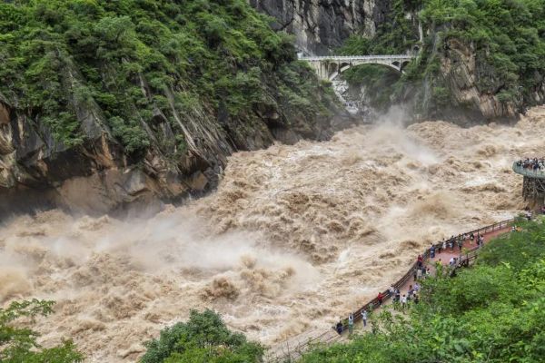金沙江经长江第一湾之后忽然掉头北上,从哈巴雪山和玉龙雪山之间的夹缝中硬挤过去,原本平静祥和的江水顿时变得怒不可遏,形成了世界上最壮观的大峡谷,而峡谷中最窄的地方就是我们今早的目的地——闻名天下的【虎跳峡】 。我们的团期覆盖虎跳峡最壮美的汛期,震撼的视觉冲击能瞬时将你惊得无言,狂怒的江水拍打着峥嵘乱石,激起冲天水柱和浪花, 浪与岸、浪与岸之间碰撞发出雷霆般的轰鸣,空气中也满带着泥沙味道。在大自然的鬼斧神工面前,人是如此渺小和微不足道。