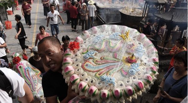 全天记录"暖寿节活动,今天正五月二十五是碧霞元君的寿诞日,数万各地香客都前来祝寿。每年的这个时候,来碧霞宫还愿、进香的信众,从早到晚,彻夜不绝,山上山下,连称一片。在这里人们席地而坐,相互拉拉家常,有的在叠纸元宝,有的躺在席上休息。数万民众祈福纳祥。人们每年都带着美好的心愿来到浮丘山朝拜、暖寿,希望能够得到“老奶”的庇佑,祈盼自己的心愿能够实现。