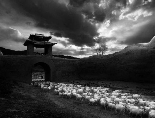 5、景泰古城的落日城楼,牧羊归来的场景,光影在城楼斜阳里,牧群归来,尘世喧嚣的生活。