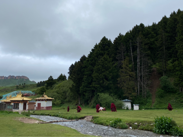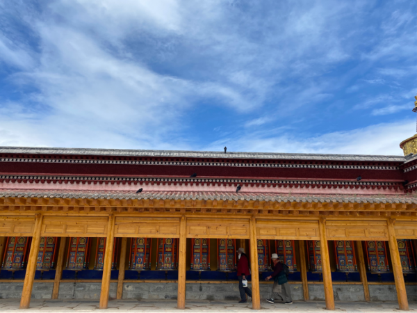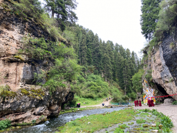 因为后边有更大的拉卜楞寺,所以不具体介绍了。相较而言,郎木寺可以更好地观察僧人的生活,小僧人们打羽毛球、放风筝、修房子干啥的。拉卜楞寺建筑更宏大,管理更规范,这方面看不到。这边还有个峡谷,但是过于湿滑,就没走了。转经筒出口的门有点低,头顶撞了一个包,宁波爷爷说是撞大运了。
