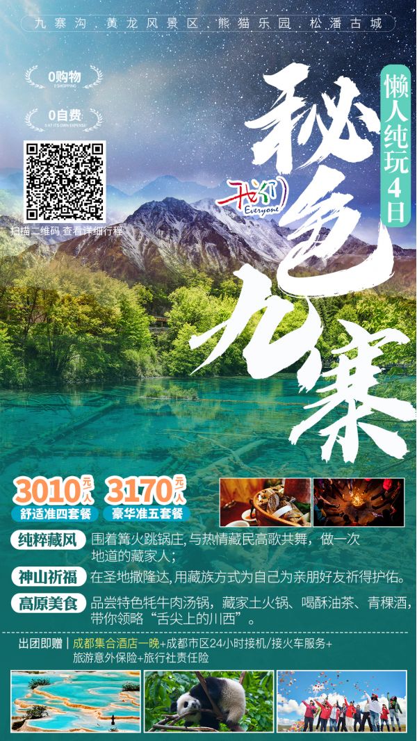 熊猫乐园+松潘古城+九寨沟+川主寺+黄龙