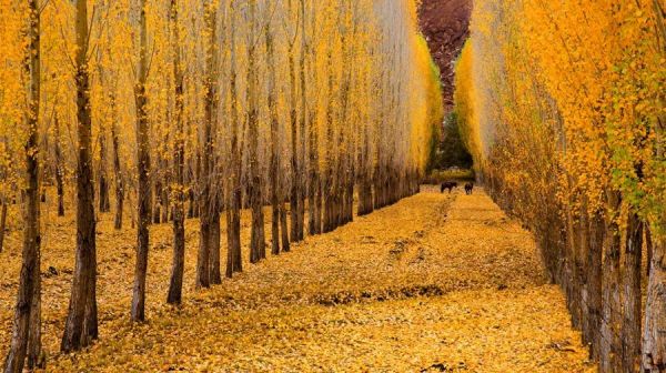 然后我们会车观一条极为小众的秘境长廊——【冷龙岭秋色长廊】,我们已经见识过沙漠与胡杨林交接的壮美,但却不知秋季的白桦林也美得不可方物。每至9-10月的秋季,长达80里的冷龙岭就会变成层林尽染的金色白杨白桦长廊,穿行其中,视野开阔,两道皆是白桦林,硕果摇金,层林尽染,繁华似锦,牛羊间或镶嵌其间,犹如一幅绚烂的油画。