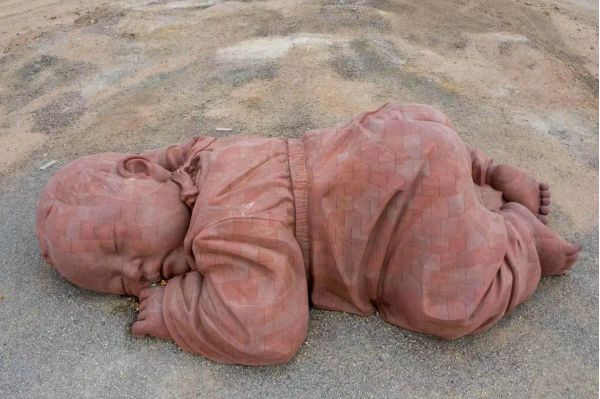 经瓜州,参观网红打卡地【瓜州大地之子】,在2016年年底的时候,一个可爱的“乖娃娃”在甘肃瓜州隔壁沙滩上横空出世,因为它不管风吹雨打都趴在那里一动不动,仿佛睡着了似的,所以 人们都喜欢称他为“乖娃娃”,而且它静静地趴在大漠之中,虽然四周有些荒凉,但却更像是整片大地都在拥抱着她,就像一个酣睡的孩子,睡在母亲的怀抱,所以它的名字叫做“大地之子”。