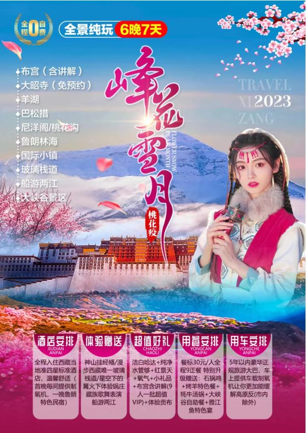 西藏卧去飞回10游 聊城发团 纯玩 无购物 布宫 大昭寺 羊湖 巴松措 尼洋阁 鲁朗林海 国际小镇 玻璃栈道 船游两江 大峡谷景区 ...... 发团日期 20230601-20230630 价格 5580 报名电话 0635 8681234