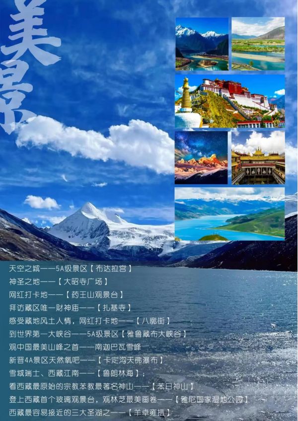 青藏9日游 聊城发团 纯玩 无购物 西宁 拉萨 布达拉宫 药王山观景台 大昭寺广场 八角街 卡定沟 雅鲁藏布大峡谷 尼洋河景观带 南迦巴瓦雪峰 ...... 发团日期 20230616 20230620 价格 4588 报名电话 0635 8681234