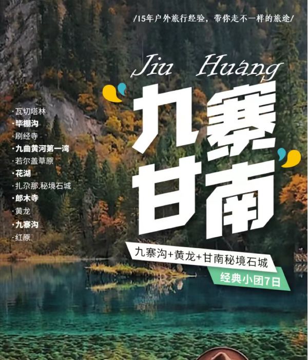 九寨沟+毕棚沟+扎尕那+花湖+九曲黄河第一湾日落+黄龙+若尔盖草原+郎木寺+红原+川主寺 圣地旅拍 2-6人小团7日