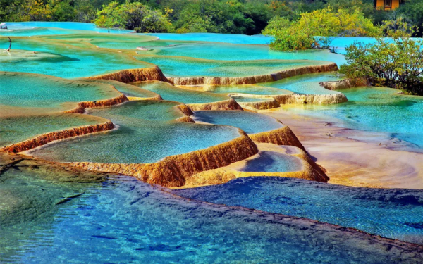 【黄龙风景区】因其独特的景观、原始的生态和丰富的资源被美称为“人间瑶池”,在这里我们可以亲身体验到“彩池、滩流、雪山、峡谷、古寺、民俗”六绝的独特魅力。黄龙风景区钙化景观非常壮观,钙化边石坝彩池、钙化滩、钙化扇、钙化湖、钙化塌陷湖、坑,以及钙化瀑布、钙化洞穴、钙化泉、钙化台、钙化盆景等一应俱全,是一座名副其实的天然钙华博物馆。乘坐索道后,我们继续沿观光道往景区最高点——五彩池、黄龙寺方向徒步,再顺着游客道便能走出景区;体力有限的游客也可以选择不行返回索道口,自费乘坐索道离开景区。