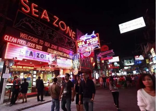 【风月步行街】芭堤雅风月步行街两旁有各式小吃、酒吧,街上熙熙攘攘。在这里可以吃到便宜的海鲜大餐。