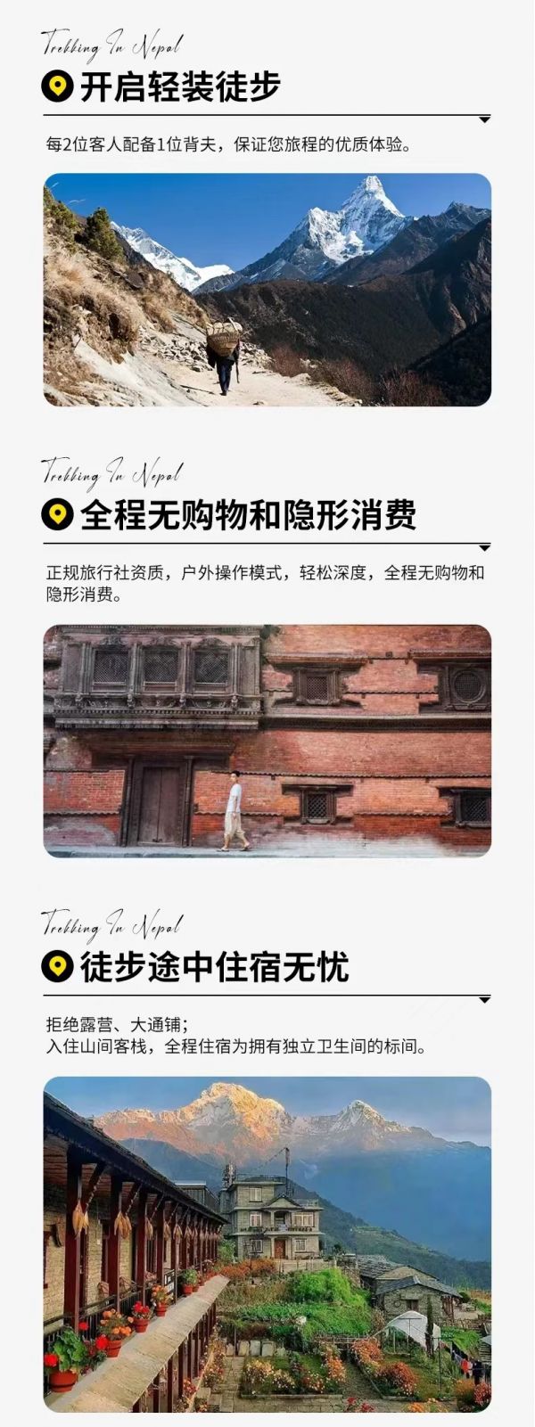 2、尼泊尔旅游不进店不推自费,请客人不要参加博卡拉的滑翔伞和小飞机等项目,这些旅游项目是中国的出境旅游保险的免责项目,请大家坚决执行。