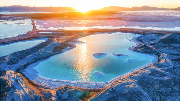 结晶之上是一层薄薄的卤水,将天空、云朵和对岸的山都倒映在白色的湖里,非常漂亮,所以也被称为“中国的天空之境”。可以乘坐景区内的小火车前往景区深处游玩,如果不乘坐小火车,也可以沿着铁轨向湖深处散散步拍拍照片也是非常惬意。