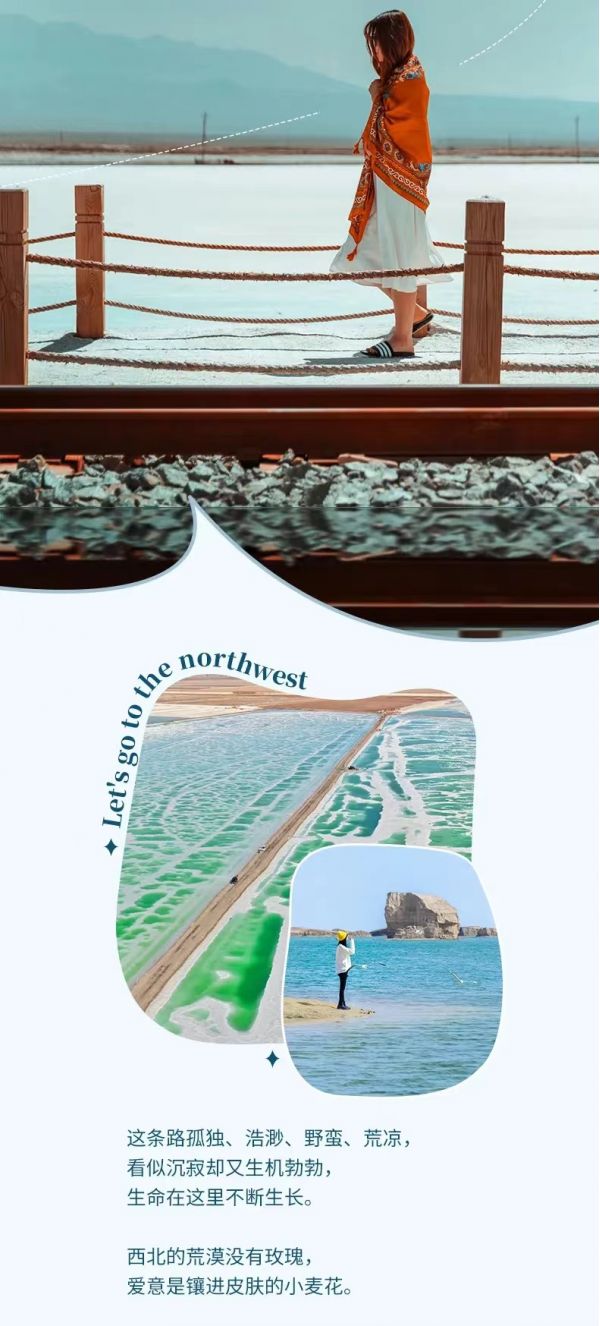 青海湖+茶卡盐湖+穿越柴达木盆地+U型公路+水上雅丹+大柴旦翡翠湖+阿克塞石油小镇+莫高窟+鸣沙山月牙泉+嘉峪关关城+张掖七彩丹霞+祁连大草原