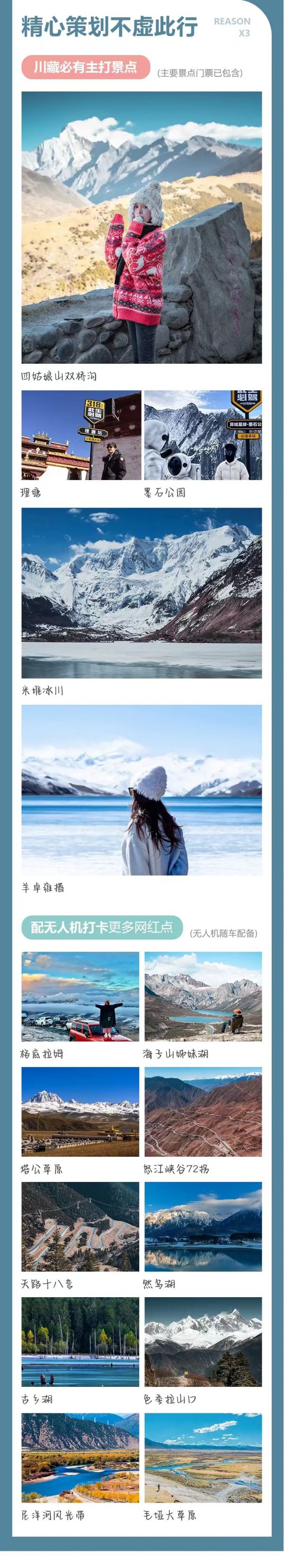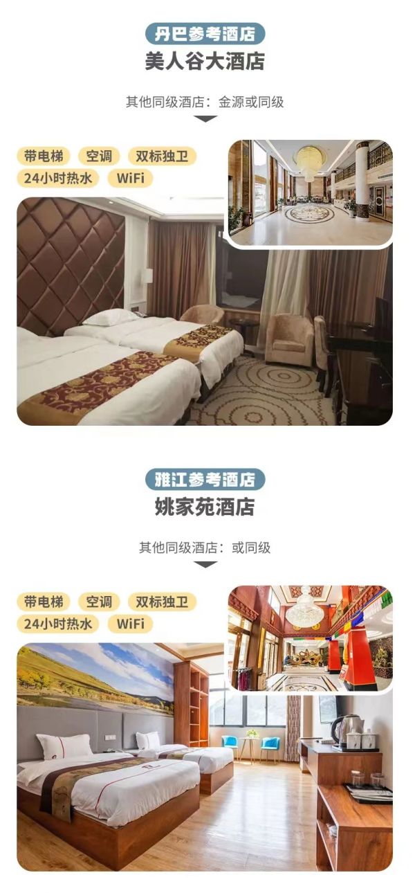 1.冬季11月-次年3月如因鱼子西/格底拉姆封山无法前往,则将鱼子西/格底拉姆景点换为八郎生都。