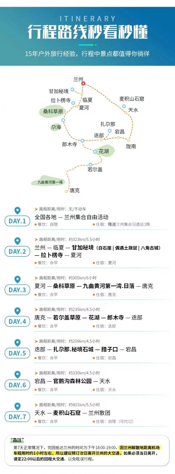 接站服务:2人及以上免费提供兰州市区拼车接火车服务,接火车的工作人员会在您出发日期前一天21:30之前向您推送消息并与您联系,如果超过时间没有接到任何通知,请及时与领队或报名处联系。(节假日用车人数较多情况下客人等待时间可能会延长;我方会安排临近航班拼车接站,如遇其他客人航班火车延误晚点情况,等待时间可能会延长,敬请谅解)