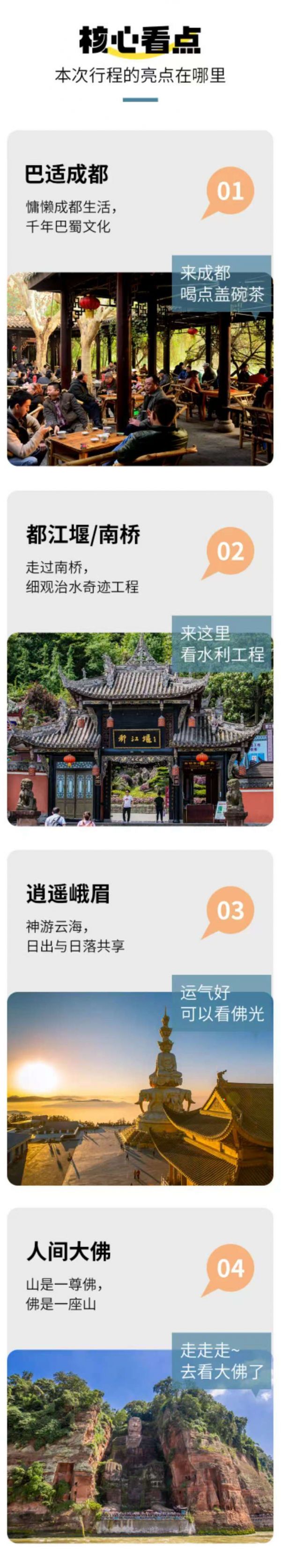 门票:乐山大佛门票、峨眉山门票、报国寺门票、熊猫基地景区门票、都江堰景区门票