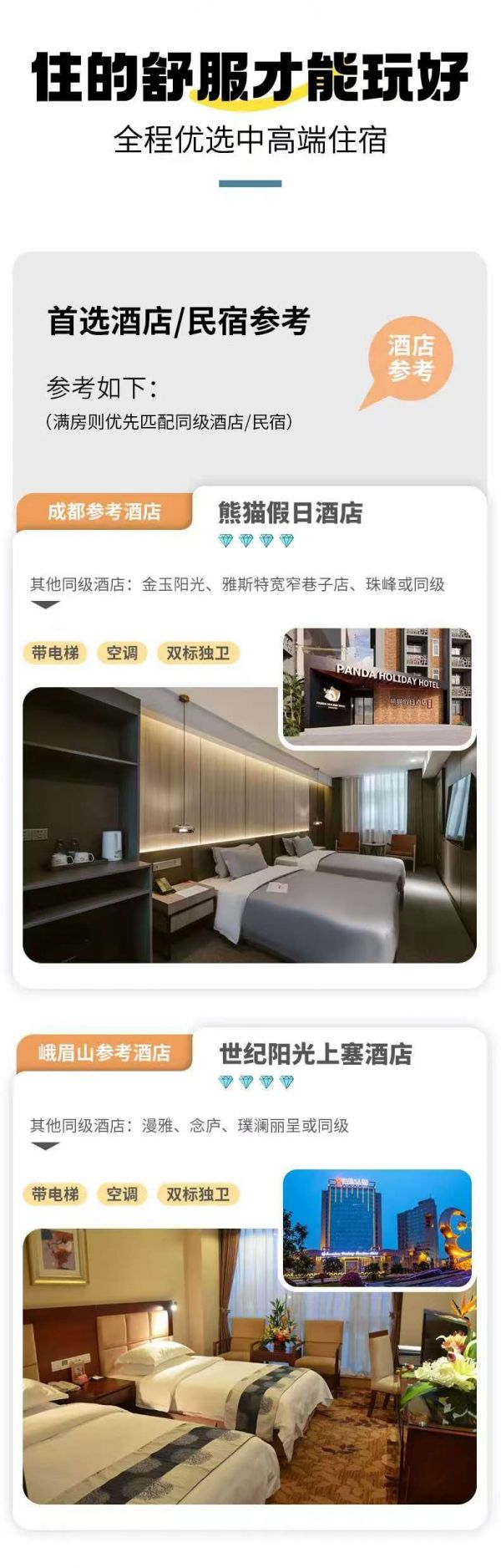 住宿:成都集合日携程4钻酒店双人标间