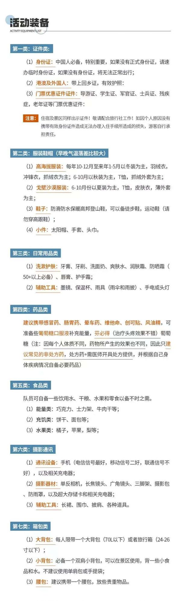3. 建议队员们在集合日抵达成都后,可在市区采购一些旅行用品,如零食、佐餐小菜、药品等;