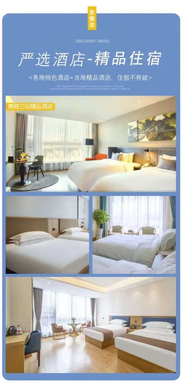 7、 住房说明:产生住宿的活动中,如出现单男单女,尽量安排该客人与同性别团友拼房;如男女一起报名的,如不能同住一间房的,需在报名时备注栏内备注清楚;如不愿拼房,请补齐单房差以享用单人房间。如单人报名要求住一个房间的,需致电客服确认是否能安排,单房差自理。