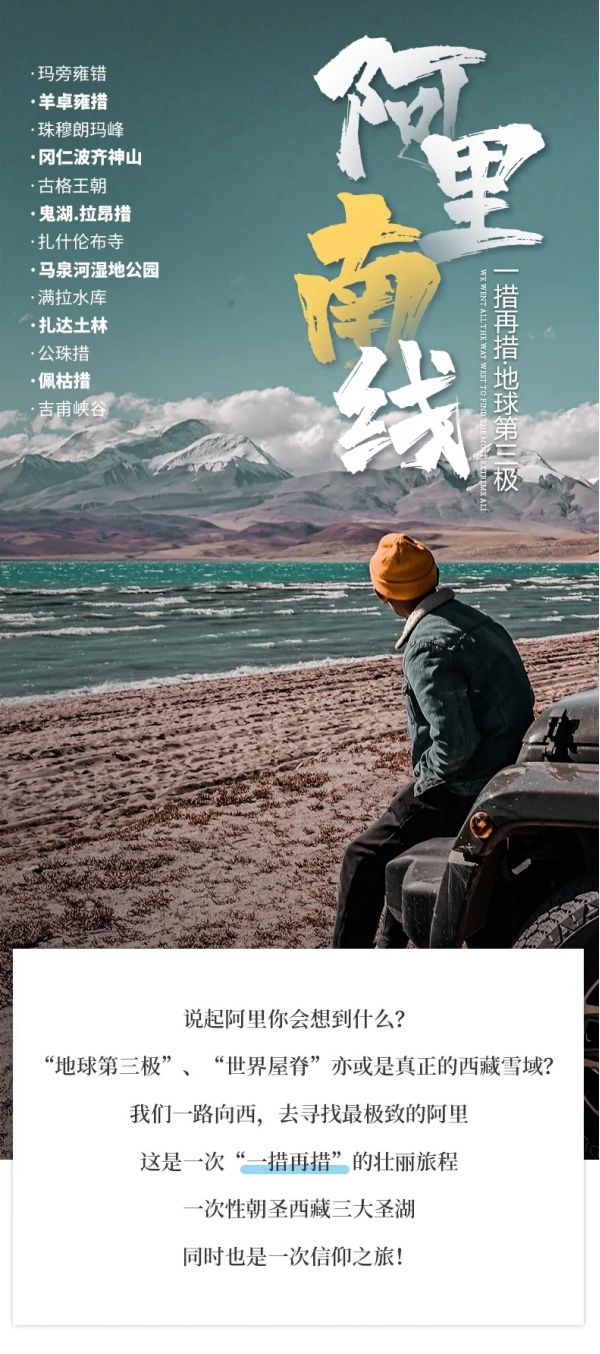 从塔尔钦启程,首先映入眼帘的是公珠措。作为进入阿里地区的第一个高原湖泊,湖水碧蓝清澈,周边湿地水草丰茂,常有水鸟栖息。继续前行,抵达马泉河湿地公园。这里是雅鲁藏布江的源头之一,广袤的湿地与沙漠交织,河流蜿蜒曲折,在阳光照射下,湿地泛着粼粼波光,成群的藏野驴、藏原羚在草原上自由奔跑。穿越仲巴,沿途欣赏高原荒漠与绿洲交替的独特景观,傍晚返回萨嘎入住。