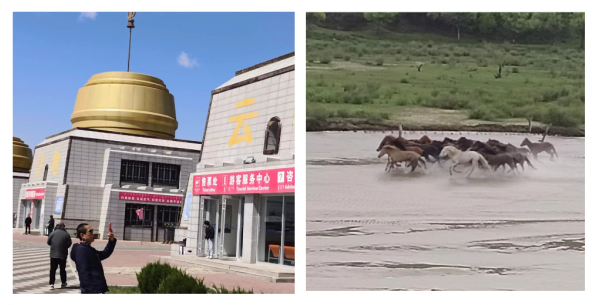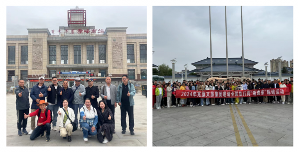 5 月 24 日下午,我们先乘汽车到新乡东站,又转乘高铁抵至石家庄站,中转换乘绿皮硬卧奔赴赤峰。几经辗转,一路北上,于 25 日清晨抵达赤峰南站。提前在此等候的专车又将我们接到赤峰博物馆广场,与山东省旅行社协会副会长、聊城市精品旅游促进会旅行社专委会会长、聊城市旅行社协会会长、山东聊城聊之旅国际旅行社有限公司董事长刘宝平以及来自全国各地的 150 多位旅行商顺利集结。配合克旗文旅集团完成宣传视频的录制后,车队驶离市区,“玩转克什克腾、畅享草原风情”的踩线活动就此拉开帷幕。