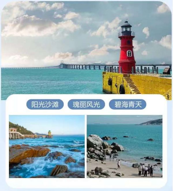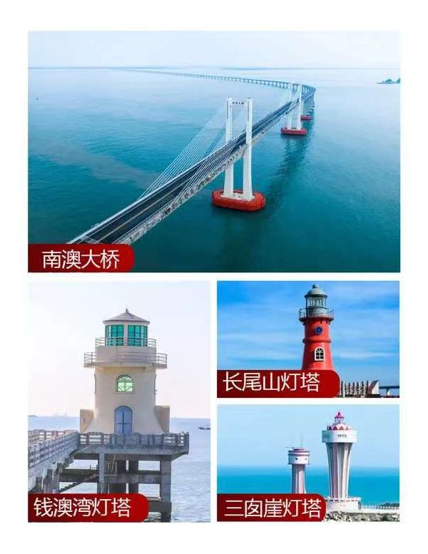 车游【南澳大桥】,后前往【长山尾灯塔】南澳岛的灯塔,比较有特殊,形状、 颜色各异,非常具有辨识度,长山尾灯塔就是之一。 从南澳大桥下桥,就是启航广场,可以看到大红色的 “长山尾灯塔”,黑色的顶部,红色的塔身,非常醒目。 长山尾灯塔也是离大桥最近的灯塔,站在灯塔旁边 的岸上,可以远观南澳大桥,景色美美哒。