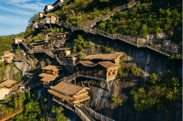 望仙谷位于江西省上饶市广信区望仙乡,是一座依托独特丹霞地貌和峡谷风光,以悬崖民宿、仙侠主题、赣家文化为特色的国家4A级旅游景区。这里将自然奇观、人文体验与沉浸式游憩完美结合,被誉为“悬崖上的仙侠世界”。