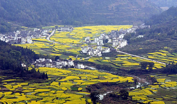 整个徽州便上演巨型的金黄色油菜花团体操...