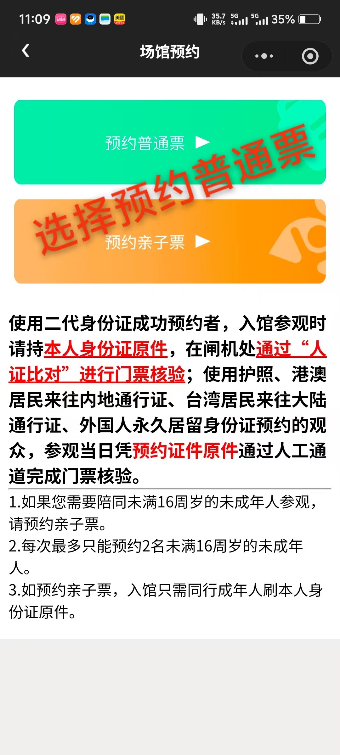 3. 使用二代身份证成功预约者,入馆参观时请持本人身份证原件,在闸机处通过“人证比对”进行门票核验;使用护照、港澳居民来往内地通行证、台湾居民来往大陆通行证、外国人永久居留身份证预约的观众,参观当日凭预约证件原件通过人工通道完成门票核验。